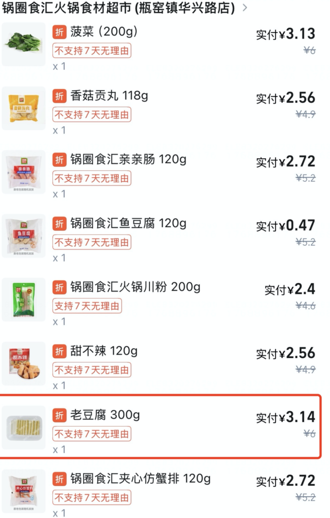 据此前报道,杭州一消费者通过外卖平台,正在锅圈食汇瓶窑镇华兴店采办了一批食材,该门店伙计注释,当天有两名新员工正在岗,新员工对营业不熟悉,操做不熟练,不小心把阿谁本该当拿到后厨处置的豆腐,拆进外卖袋子里了。消费者发觉豆腐过时后,取门店协商,涉事门店最后只愿补偿过时商品价钱的十倍,也就是30元。颠末多方协调后,门店最终补偿该顾客300元。