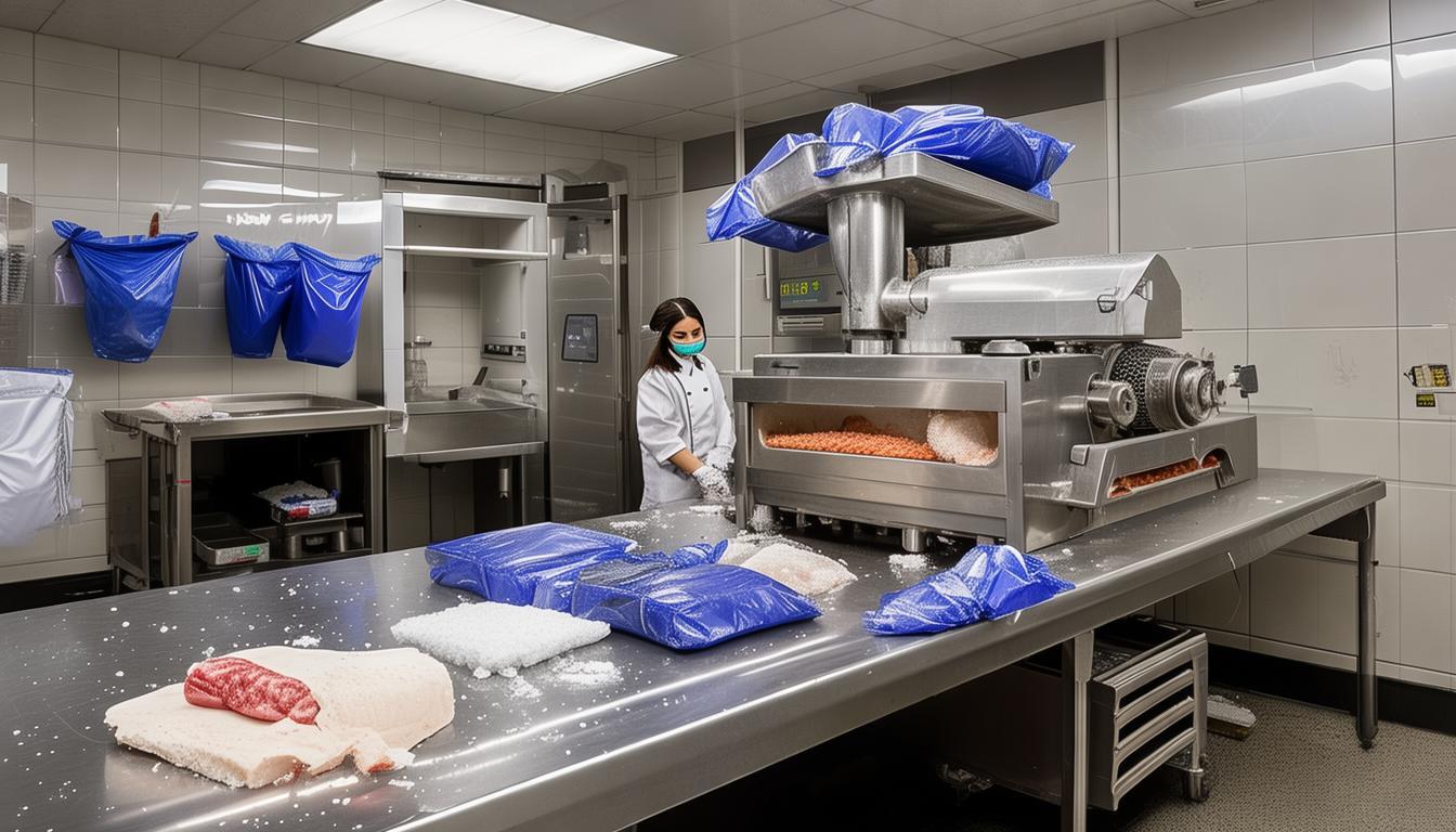 验收完了之后,学校就把这些鲜猪肉交给食堂的从业人员去向理了。他们把鲜猪肉分化成一小块一小块的,此中大部门的鲜猪肉都拿碎肉机绞成了肉沫,然后拆到袋子里放进了冰柜冷冻起来;那些带着骨头的肉呢,就分化成小块之后间接拆袋放进冰柜冰冻。可是啊,就是这么一通下来的操做,仿佛并没有能猪肉的平安,这储存的方式是不是也有什么不靠谱、不合适的处所呢?这可实是让里头七上八下的呢。