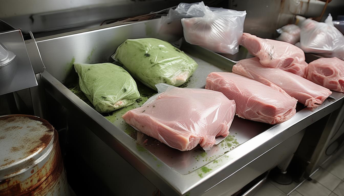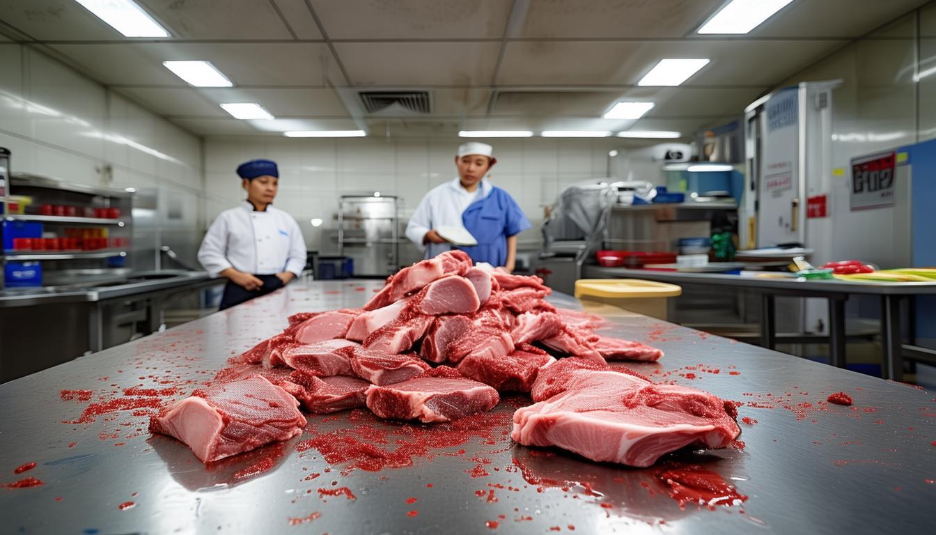 验收完了之后,学校就把这些鲜猪肉交给食堂的从业人员去向理了。他们把鲜猪肉分化成一小块一小块的,此中大部门的鲜猪肉都拿碎肉机绞成了肉沫,然后拆到袋子里放进了冰柜冷冻起来;那些带着骨头的肉呢,就分化成小块之后间接拆袋放进冰柜冰冻。可是啊,就是这么一通下来的操做,仿佛并没有能猪肉的平安,这储存的方式是不是也有什么不靠谱、不合适的处所呢?这可实是让里头七上八下的呢。