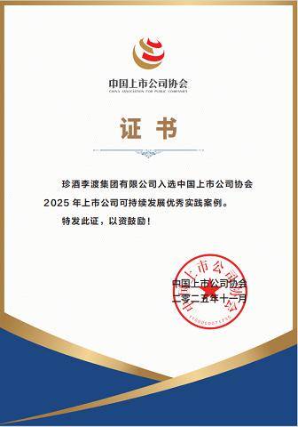 近日,中国上市公司协会发布2025年上市公司可持续成长实践案例搜集评选成果,珍酒李渡凭仗优良ESG实践,入选“2025年上市公司可持续成长优良实践案例”。
