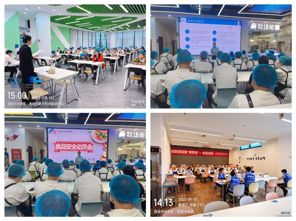 9月15日至19日,立异港分析办理办事核心环绕食物平安、反餐饮华侈,开展普遍带动。9月15日,勾当现场,核心从任巩滨做带动讲话,食堂办理人员及工做人员参会,食堂司理代表、厨师代表对食堂食物平安工做做讲话,各餐饮公司签定《立异港食堂秋季食物平安义务书》。