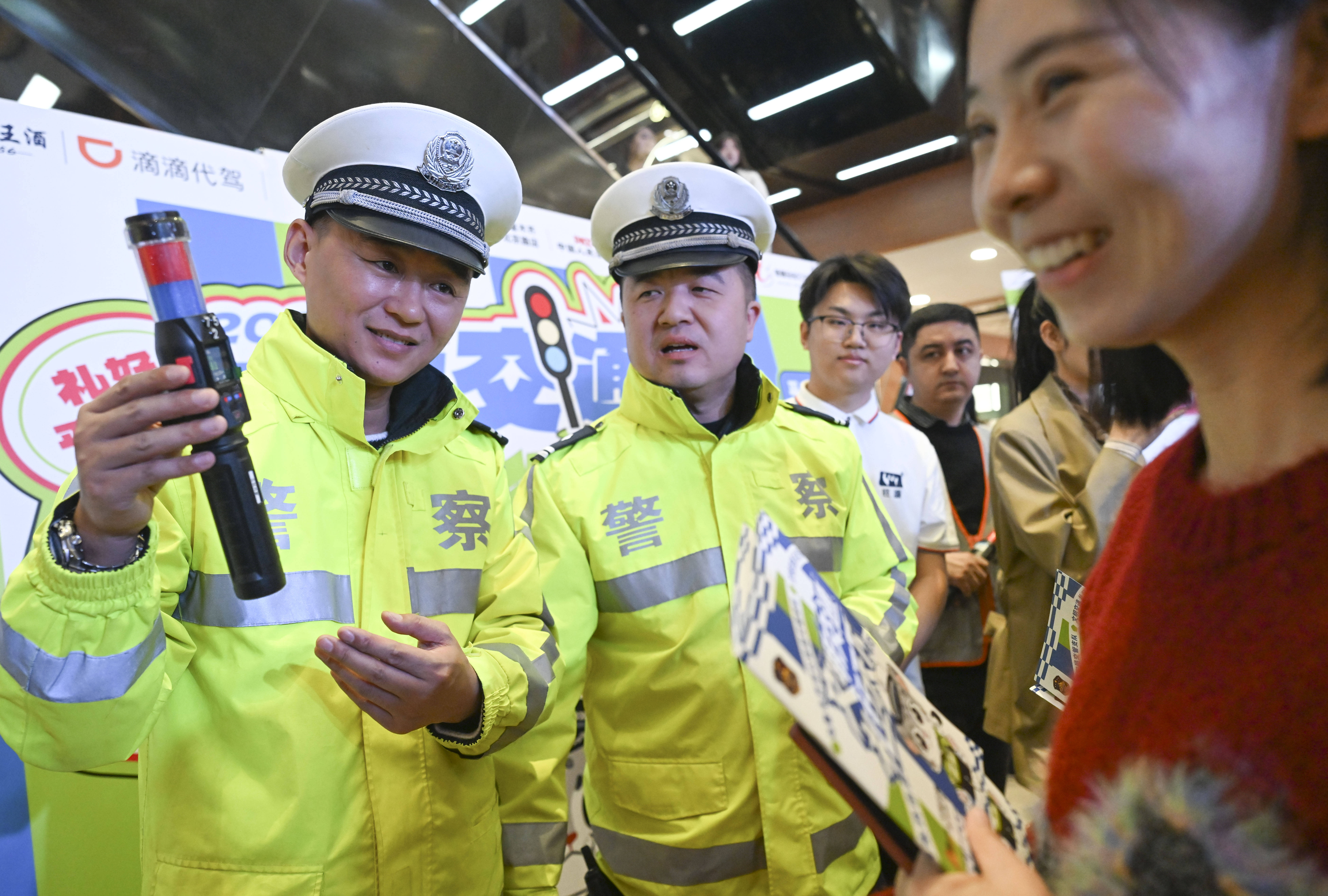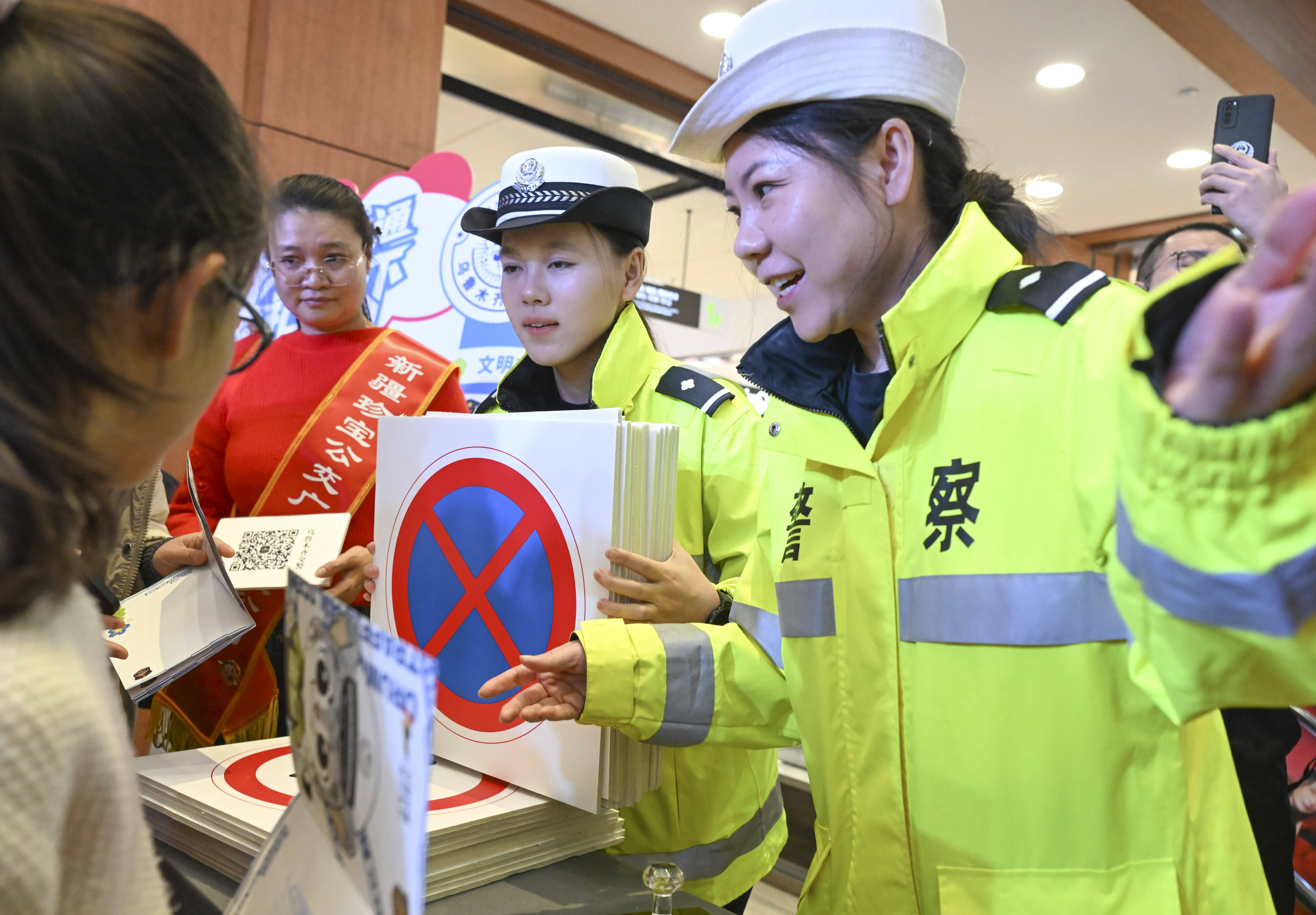1月2日,正在乌鲁木齐市汇嘉时代购物核心,向市平易近宣传交通平安学问。 记者 王菲 摄。