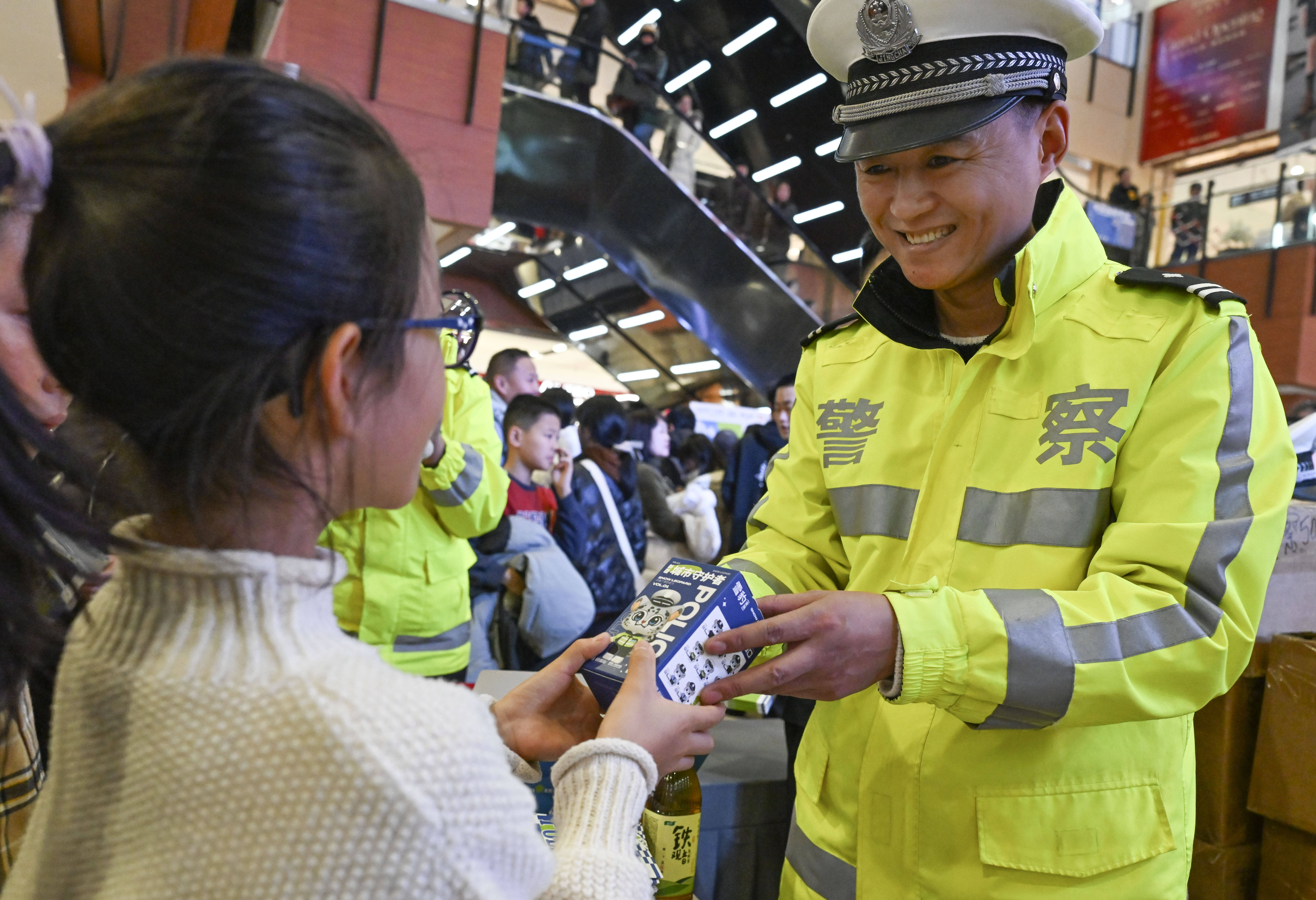 1月2日,正在乌鲁木齐市汇嘉时代购物核心,向小伴侣宣传交通平安学问。 记者 王菲 摄。